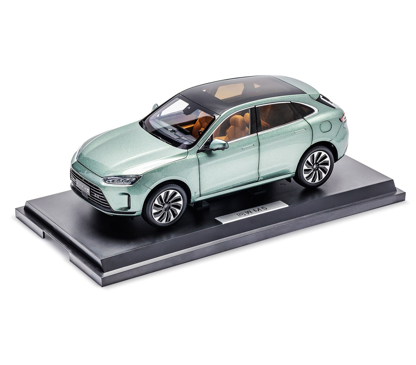 Модель автомобиля AITO M5, размер 1:18. Цвет: зеленая морозная сосна